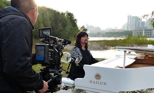 為此,羅伯特專程來到蘭州進行形象片的錄制。當然,他選用的肯定是老朋友海倫鋼琴。在海倫鋼琴陳海倫董事長的親自安排下,海倫公司專門從寧波總部運來兩架三角琴供他使用。